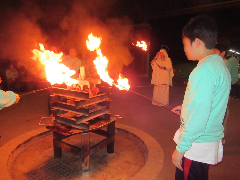 一日目は野外炊事でカレーライスを作ったり、キャンプファイヤーで友達と楽しくダンスを踊ったりしました。