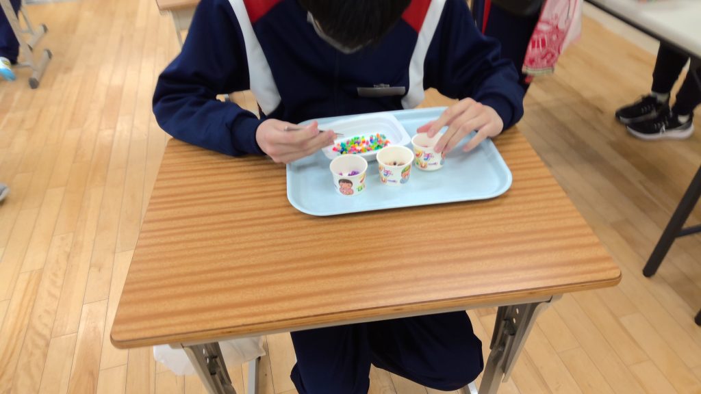 アイロンビーズの色分け、指示書を見て袋詰め