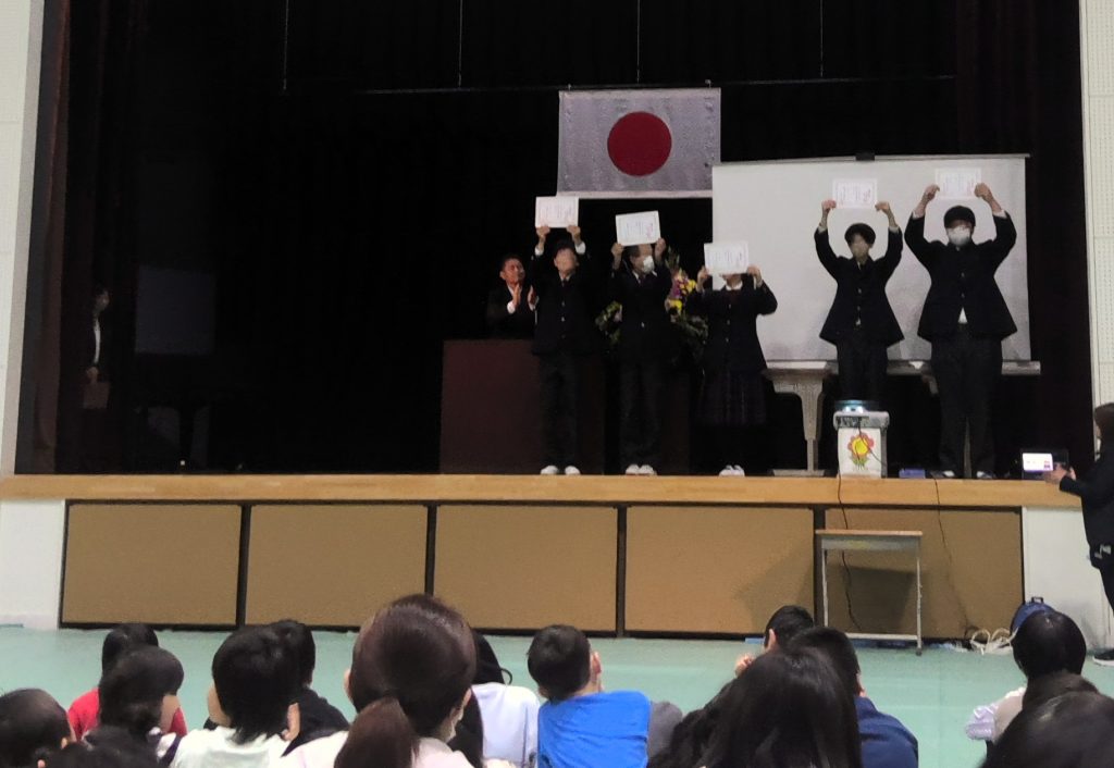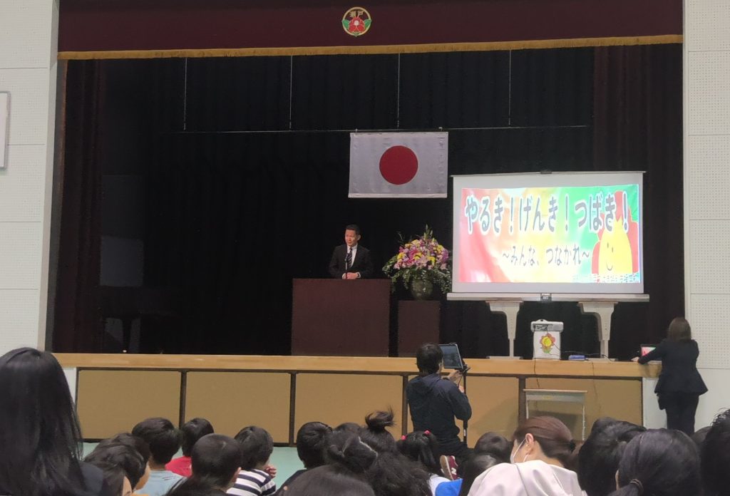 令和8年4月7日、第1学期始業式を行いました。今年度初めて小学部、中学部、高等部の児童生徒全員が体育館に集まり、校長先生から、瀬戸つばきのスローガン「やるき!げんき!つばき!」のお話を聞きました。始業式の後には、各部の児童会や生徒会役員の認証式が行われました。